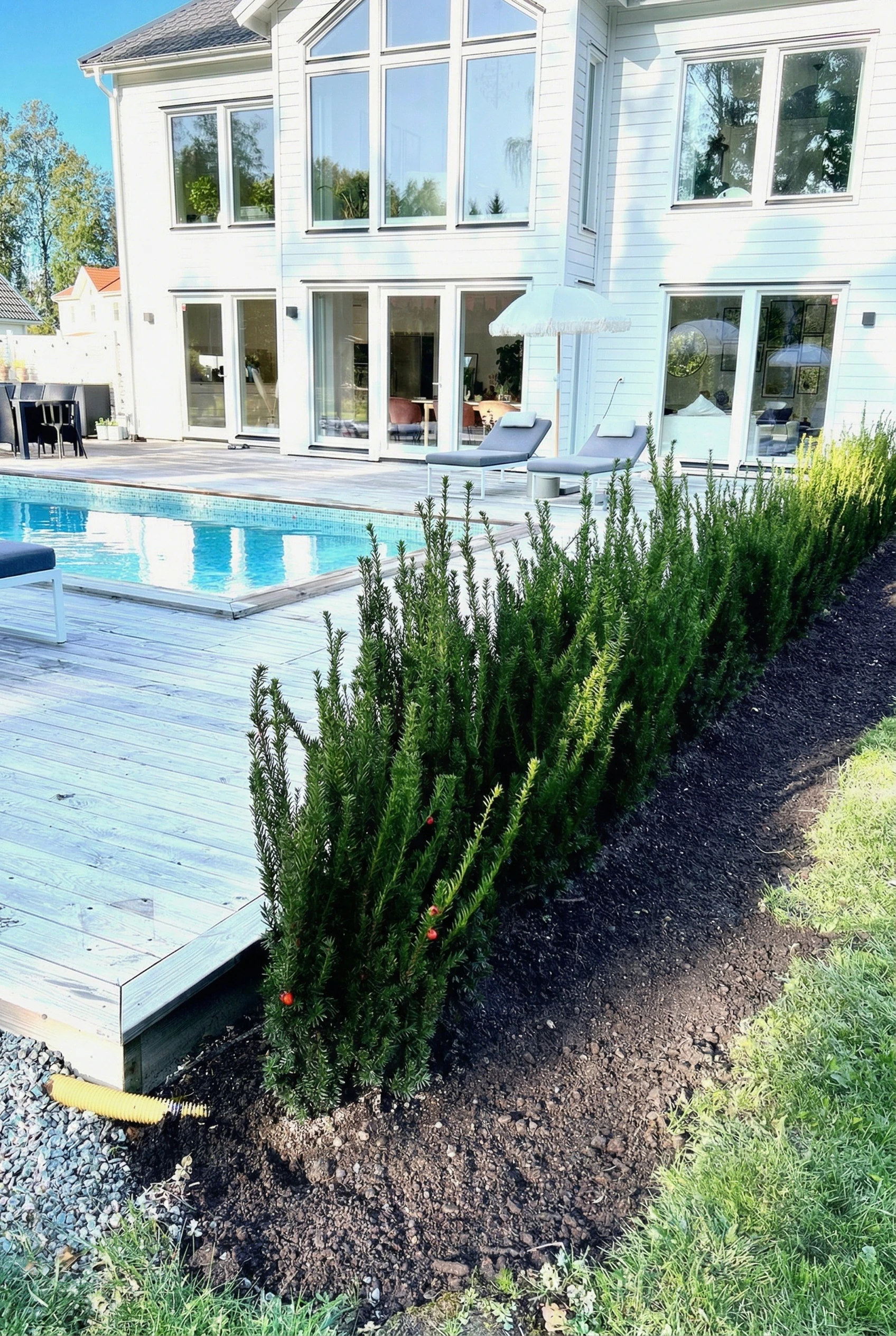 Dette er idegranen for strammere avgrensninger. Der ‘Hillii’ vokser opprett og bredere, vokser ‘Hicksii’ opprett og disiplinert — en naturlig søyleform som får plass der andre ikke gjør det. Mindre hager, smale passasjer, presise linjer. Strukturen er den samme. Plassen den opptar er mindre.